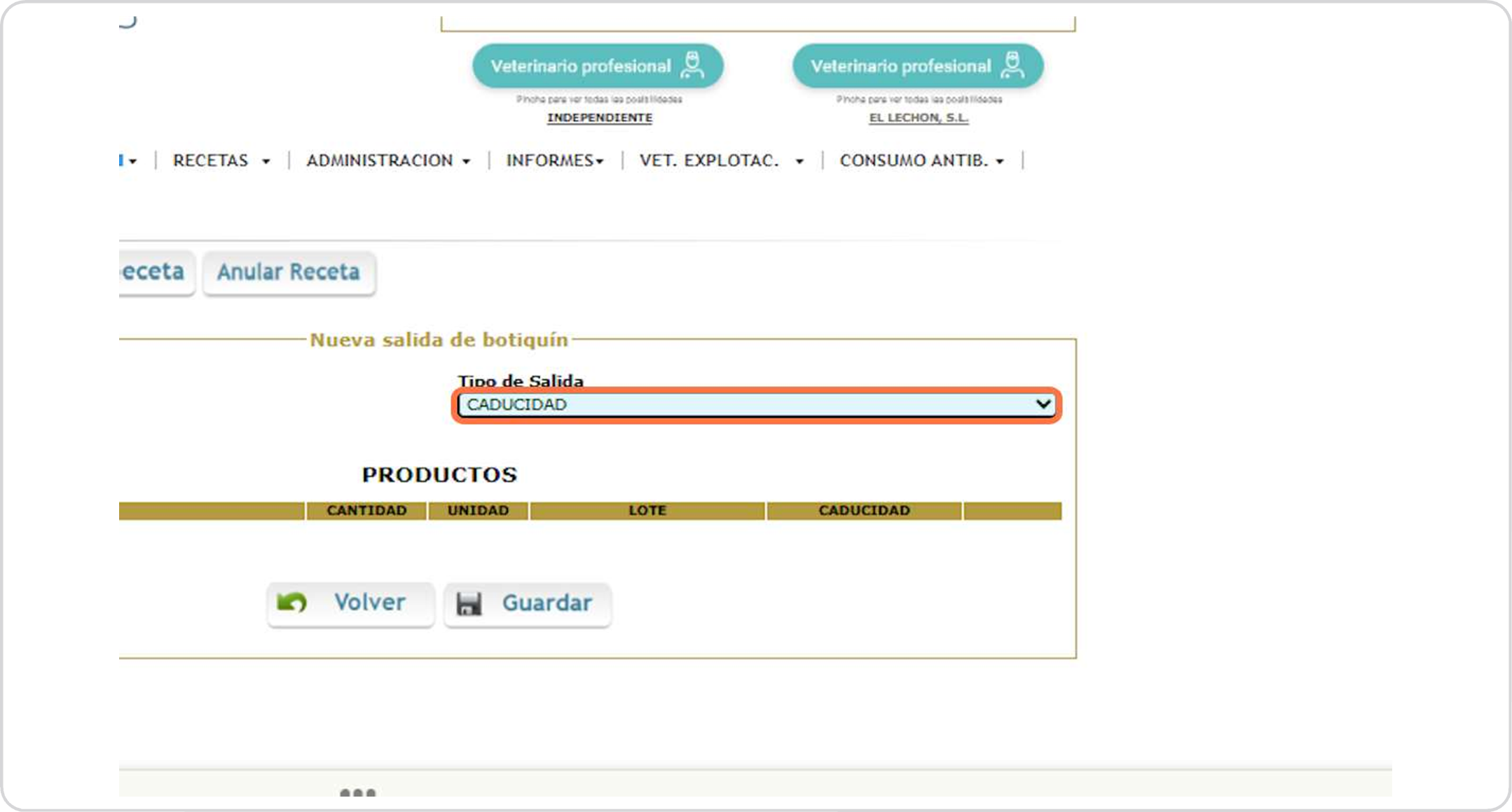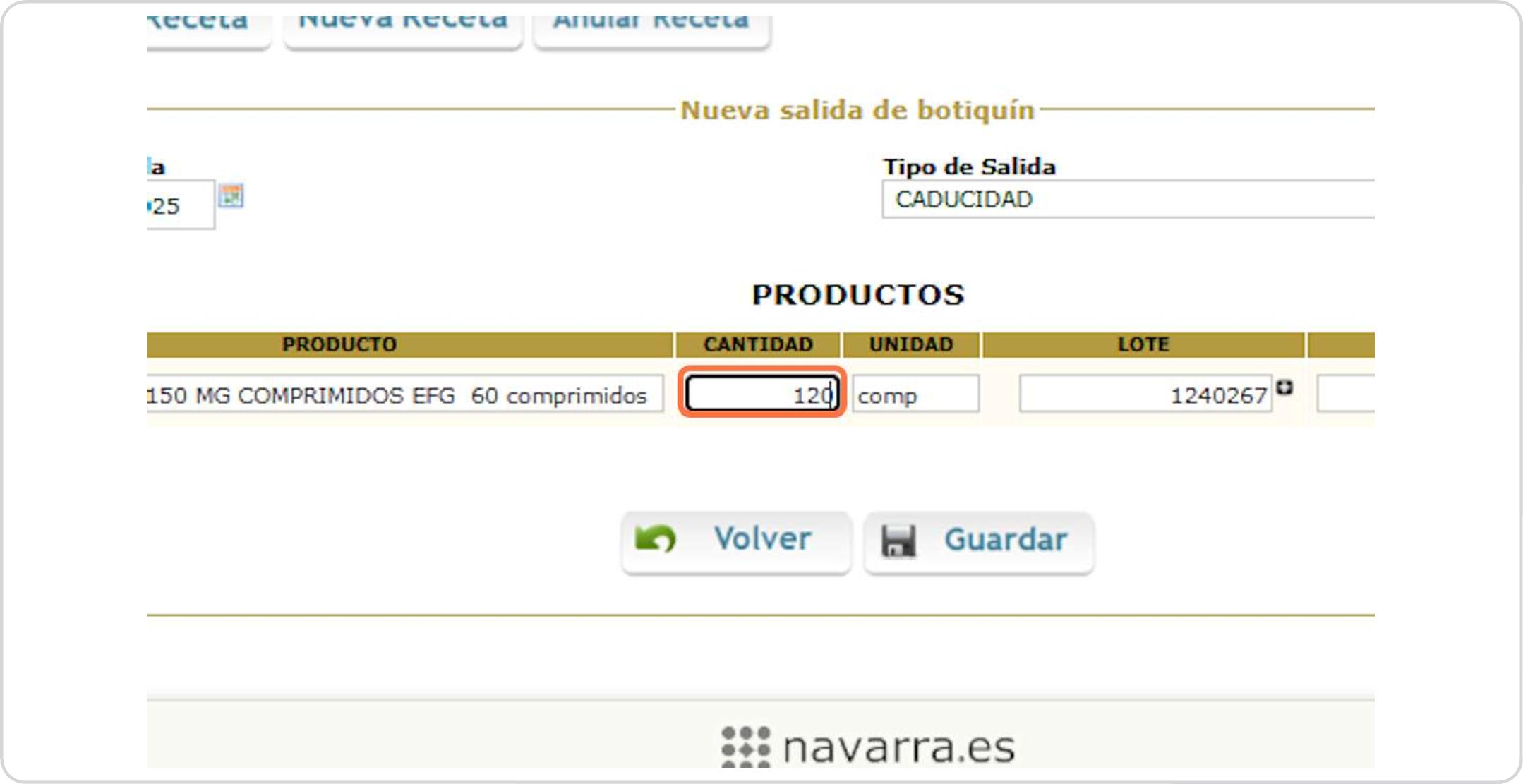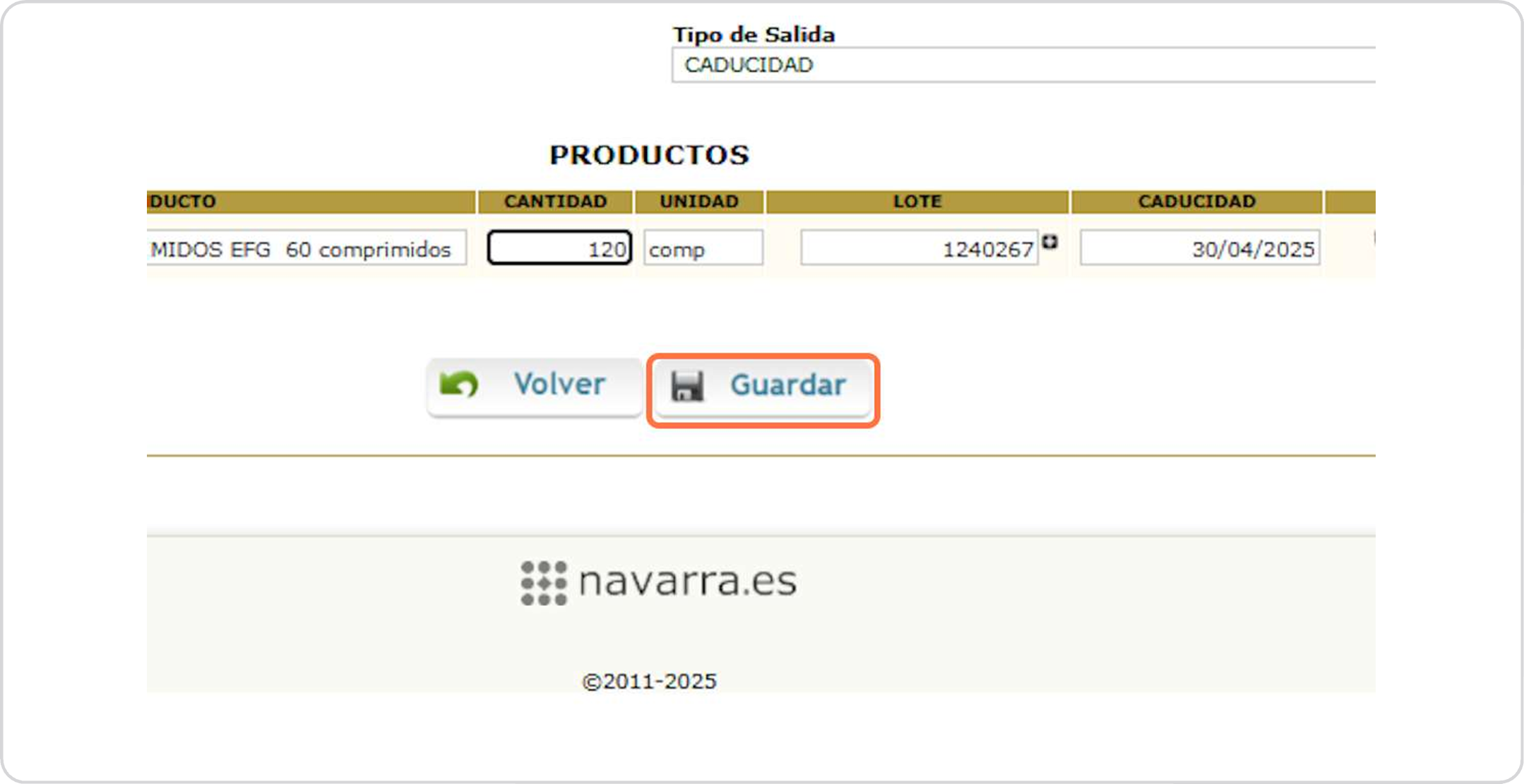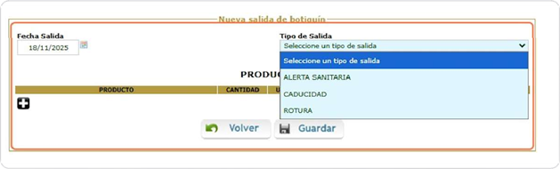 Botiquín salida productos