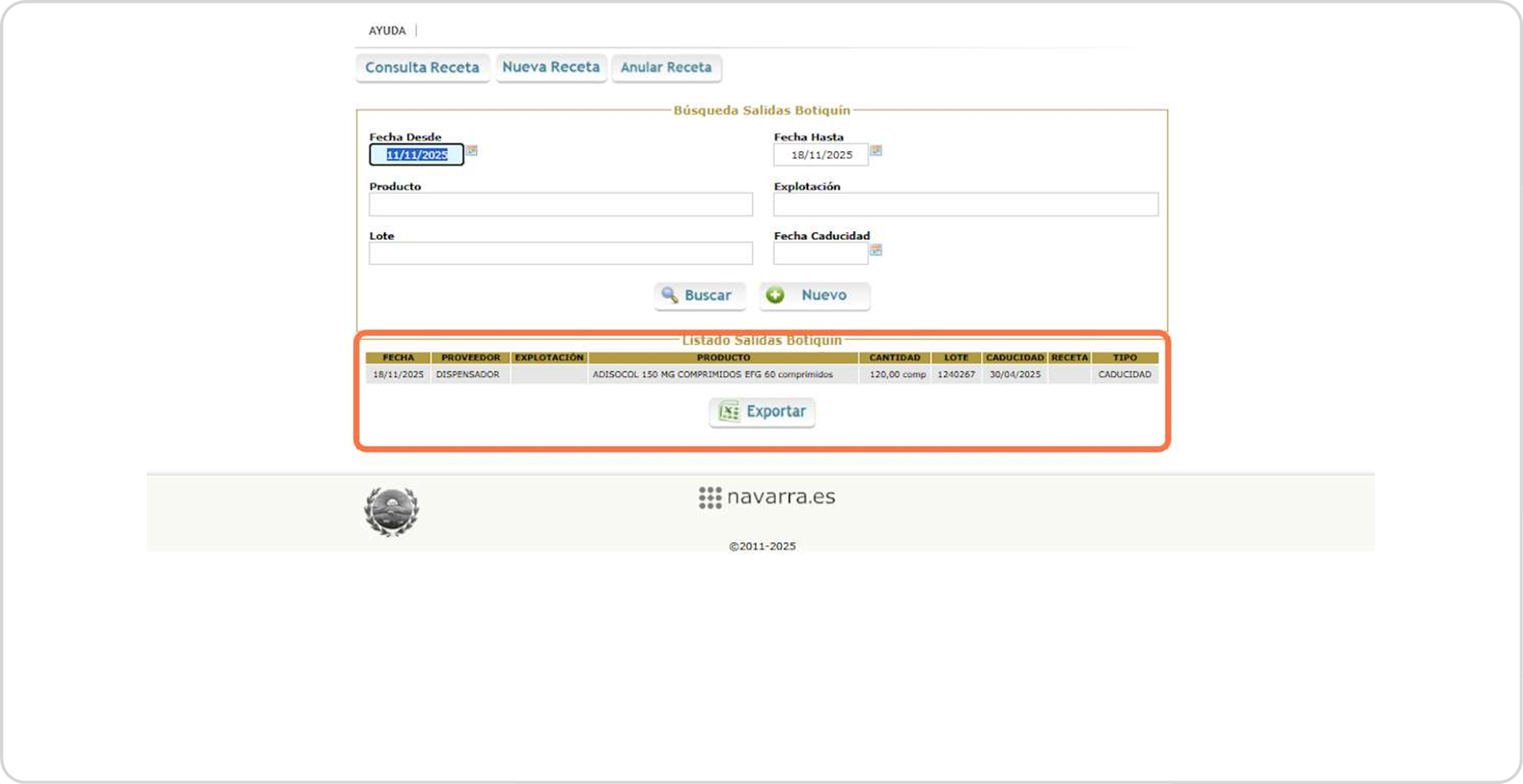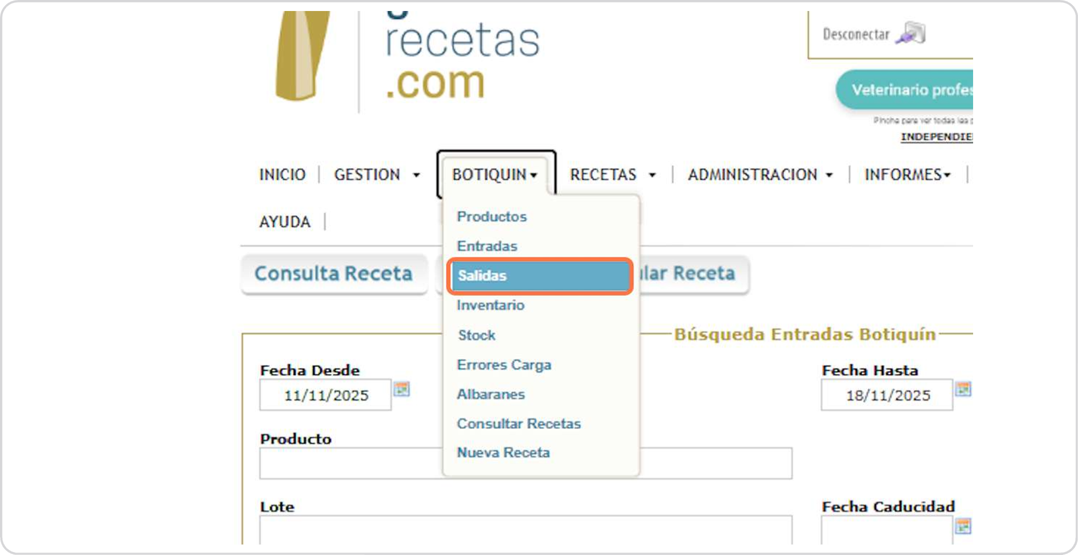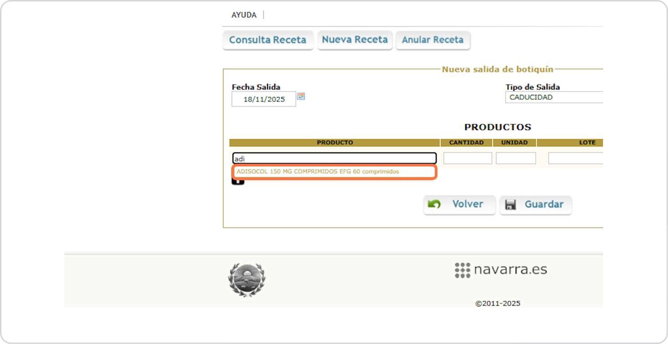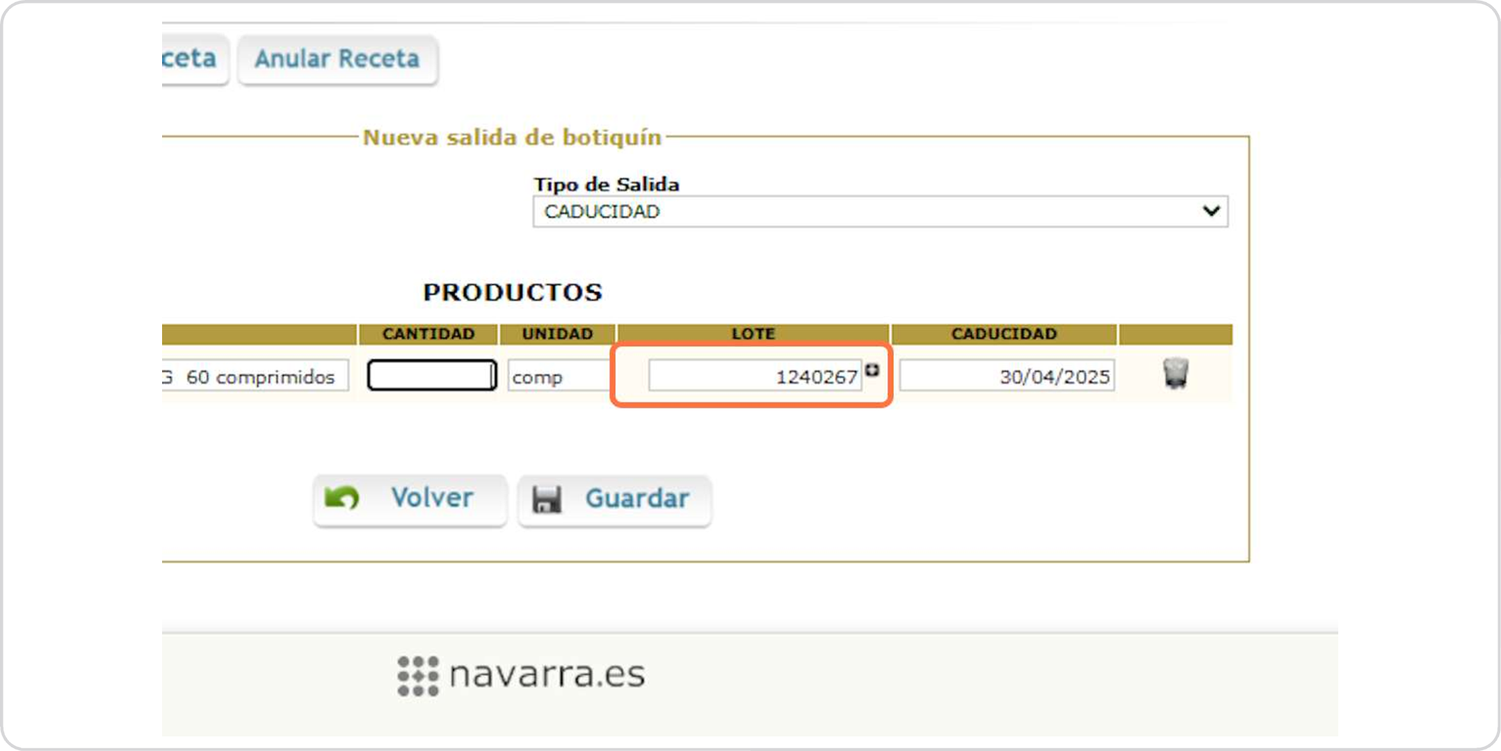 Botiquín salida productos