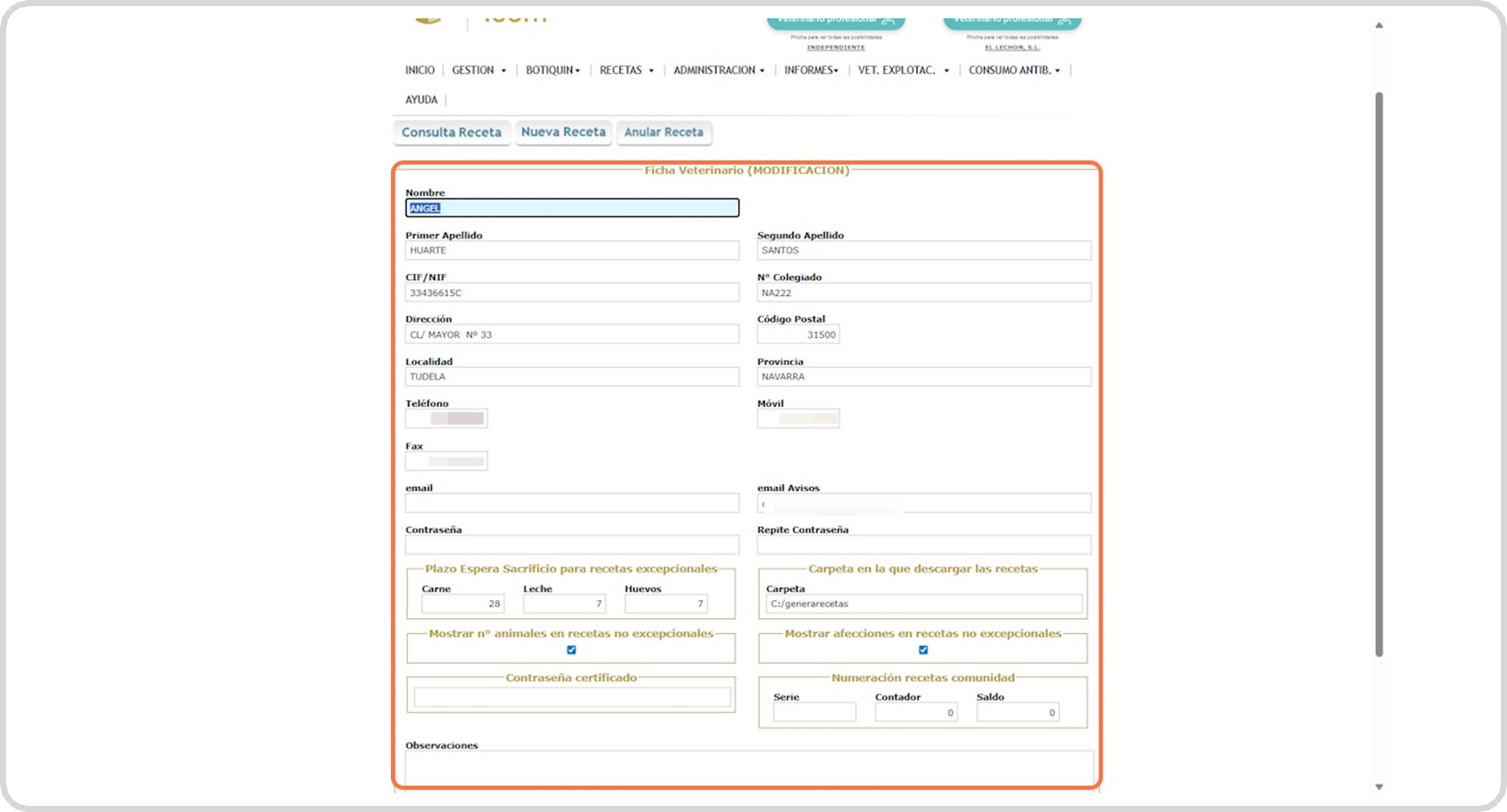 PASO 1 Localizamos la Receta que tengamos que modificar en nuestro listado de Recetas Firmadas PASO 2 Una vez localizada la receta haremos doble clic en el número de la receta PASO 3 Se abrirá el anexo de modificación PASO 4 Si lo que necesitamos es ...