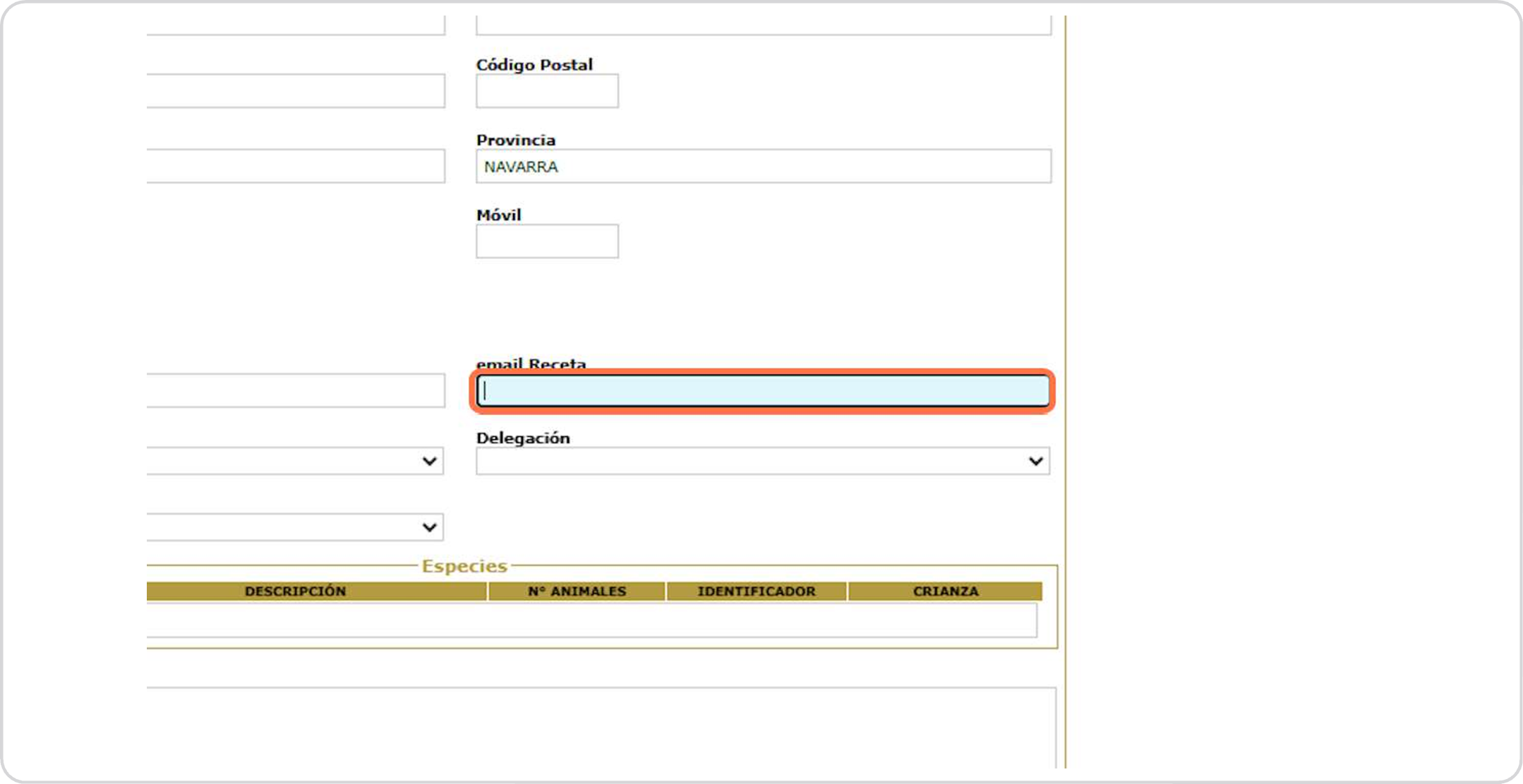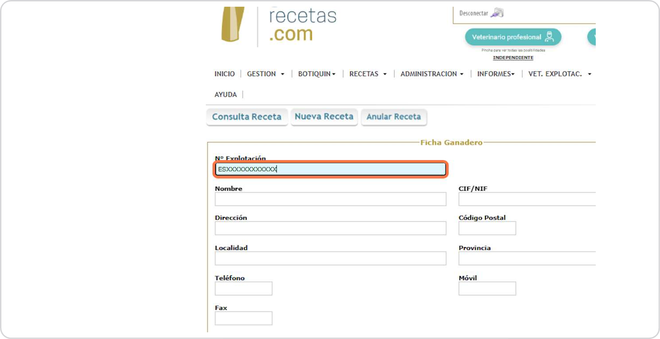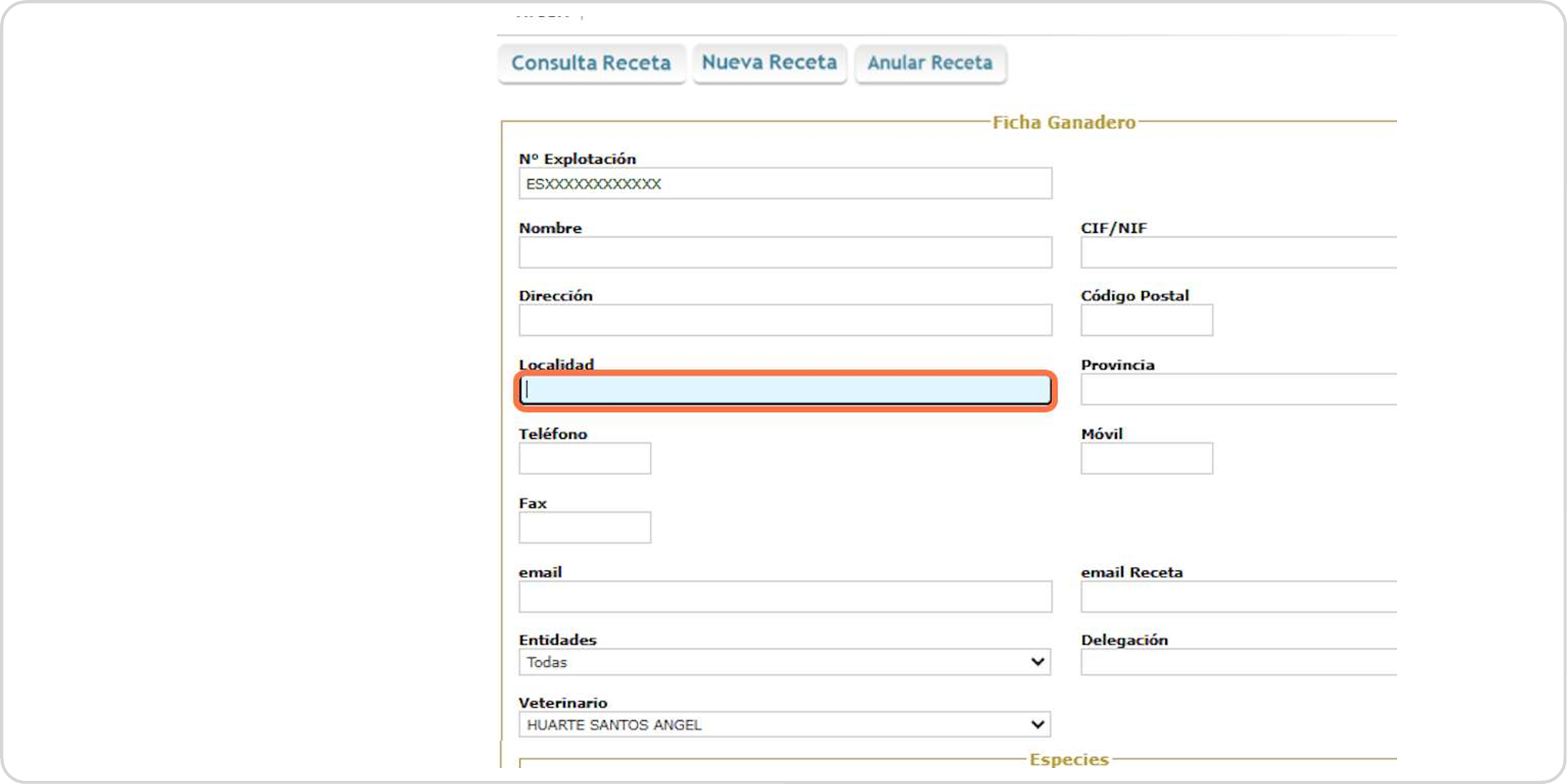 Escribiremos el REGA: ES + 12 números si se trata de un ganadero
