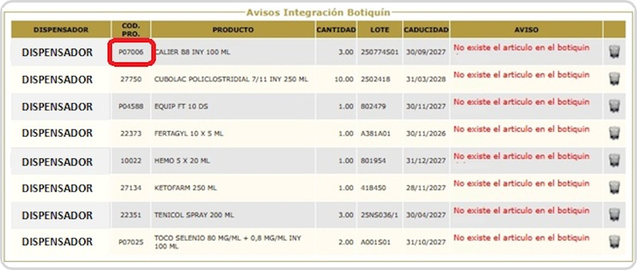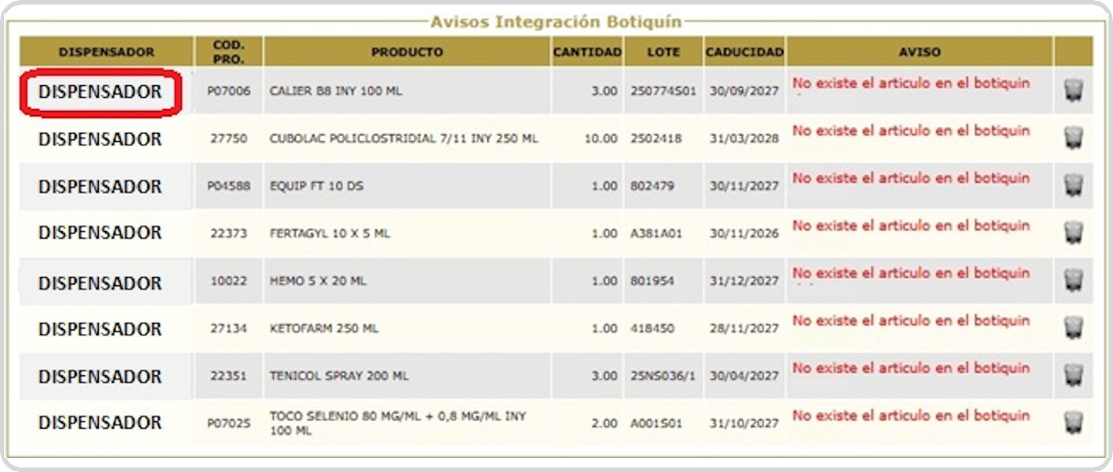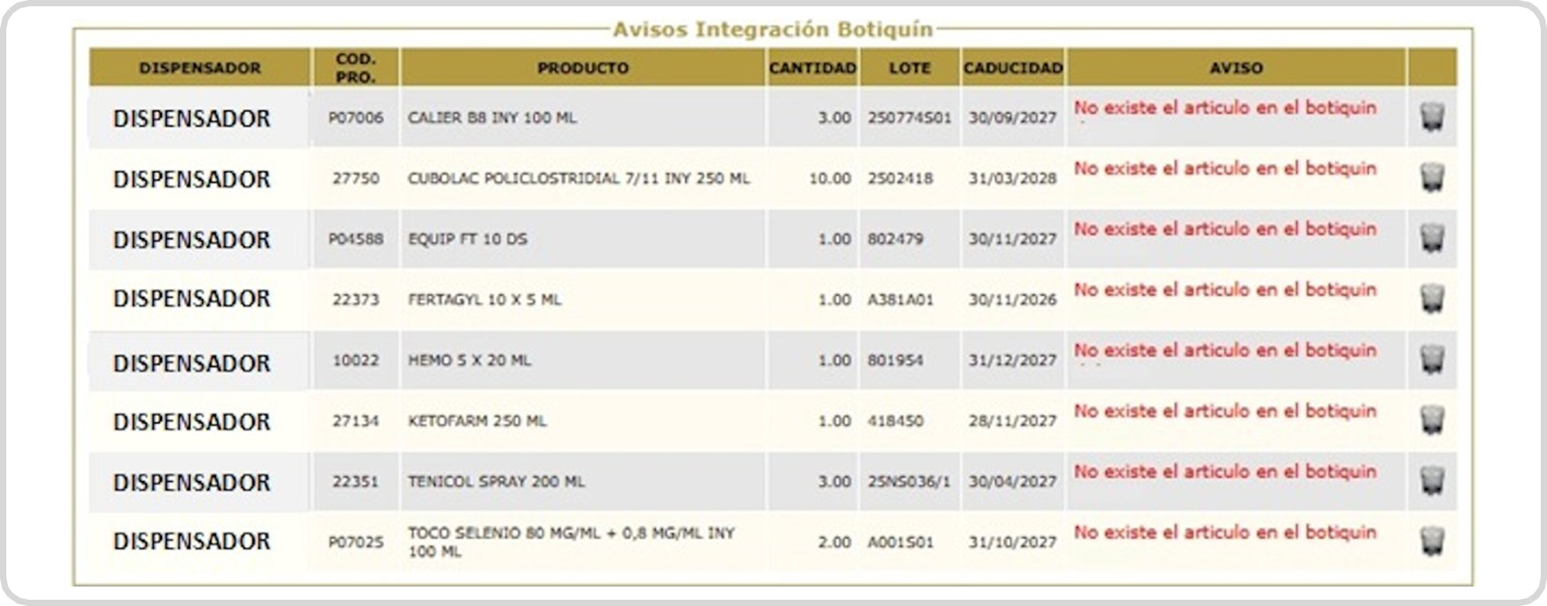 Botiquín salida productos