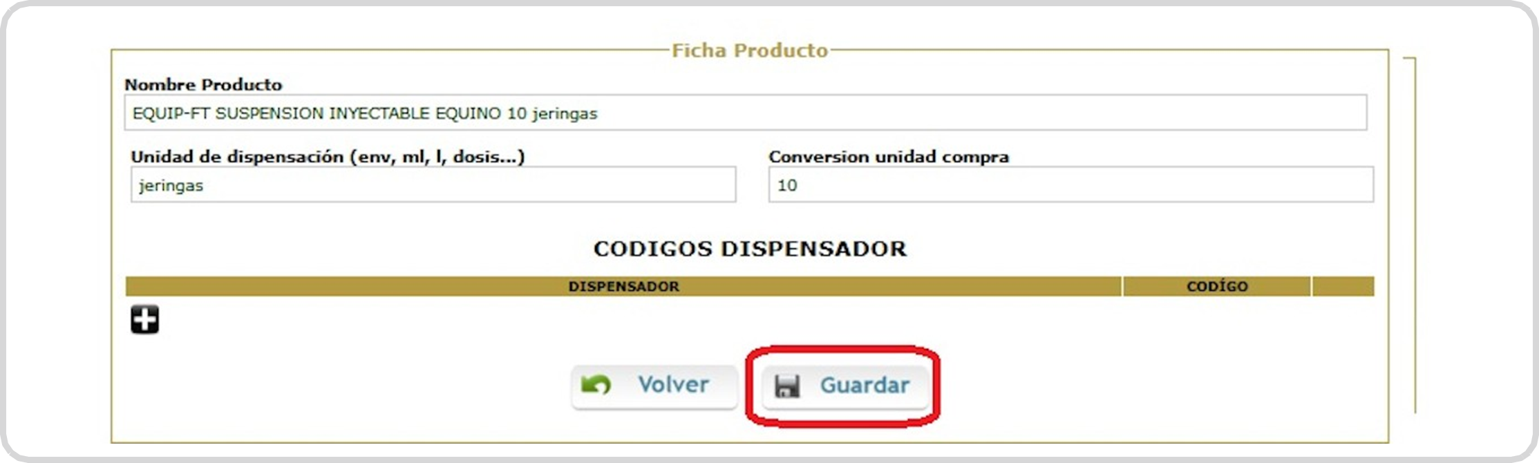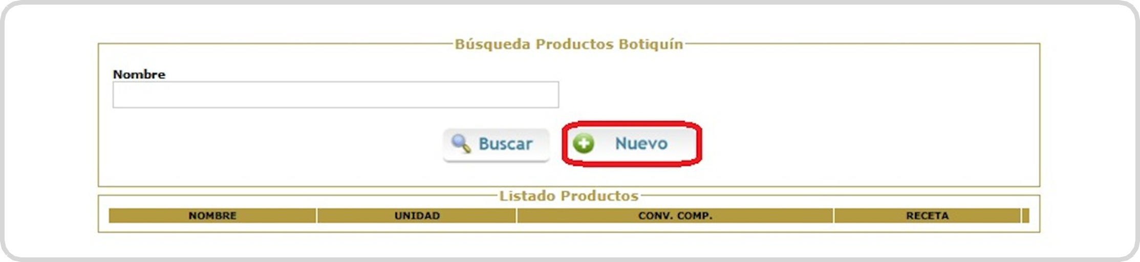 Botiquín/Productos/Nuevo y le daremos de alta