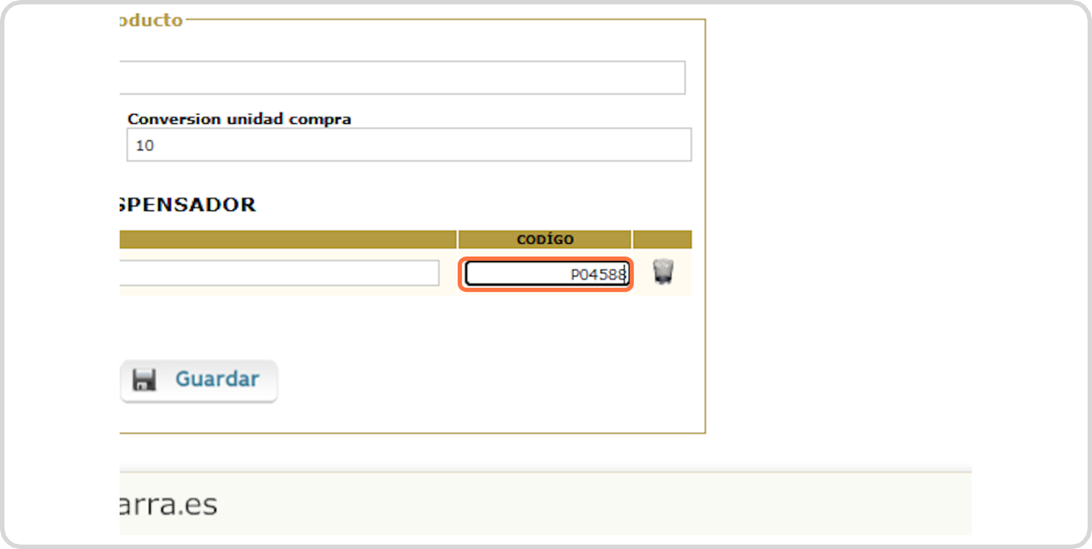 El código del producto