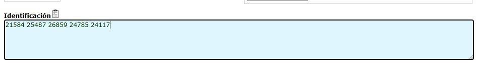 En el campo de identificación se escribirá el N.º de crotales o lotes seguidos y separados por espacios (no utilicéis columnas ni caracteres).