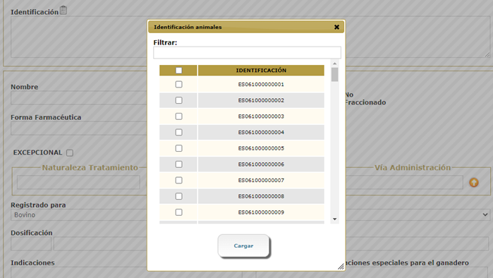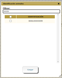 En la que podremos seleccionar uno, varios o todas las identificaciones de los animales.