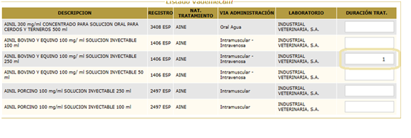 Ponemos los días que queremos que aparezcan en el medicamento y la presentación correspondiente