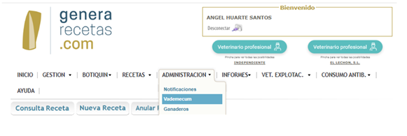 Accedemos a Administración/Vademecum