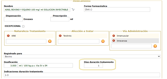 Cuando se genere la receta de ese medicamento, se pondrá automáticamente los días que se hayan predeterminado y en indicaciones aparecerá la duración de tratamiento según Ficha Técnica